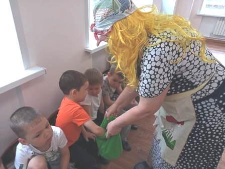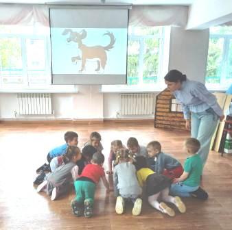 Дети отправились в гости к Бабушке-Рассказушке. По пути детям встречалось много животных (героев сказок), которые и помогли им добраться до места. Детям удалось вспомнить героев сказок, исполнить танец, отгадать загадки, послушать новое для ребят произведение (сказку) от Бабушки-Рассказушки.