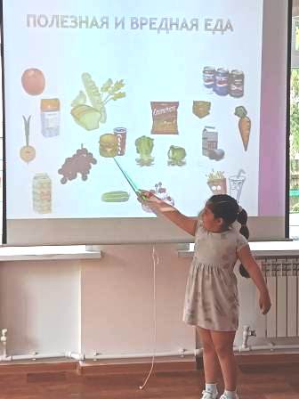 - познавательные беседы с показом презентации о пользе витаминов, важности соблюдения режима питания, пользе занятий спортом. Дети вспомнили и закрепили виды спорта, отразив в рисунках, прослушали песни на спортивную тематику.