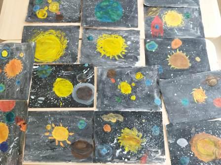 День космонавтики - памятная дата, отмечаемая 12 апреля. В связи с этим, в подготовительной группе, 11 и 12 апреля прошли мероприятия, посвященные Дню космонавтики. Дети узнали много о Вселенной, о героях космонавтах, покоривших космическое пространство. Знания, полученные на занятиях, дети закрепили в своих творческих работах. Рисунки выполнены с большой фантазией и представляют из себя яркий мир красок, ночного неба нашей галактики. А также дети построили свою ракету для путешествия в космосе, сделали космическую разминку, пролетали в невесомости, собрали космический мусор и подружились со звёздами.