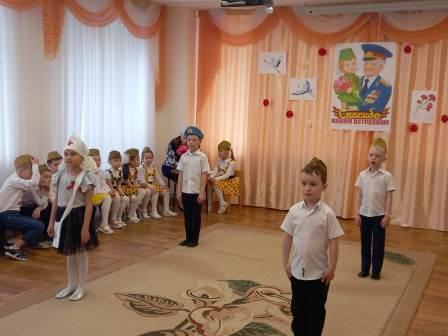 Праздничное мероприятие «День Победы» прошло в старшей и подготовительной группах. Дети пели песни, танцевали, рассказывали стихи, ставили инсценировки.