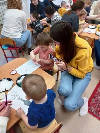 Затем воспитатель (Гисматова И.С.) сделала сообщение на тему "Художественно-эстетическое воспитание детей в ДОУ". Потом была проведена образовательная деятельность соместно с родителями - аппликация "Верба".