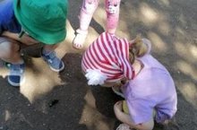 Летом дети пребывают на свежем воздухе почти целый день. Это дает возможность больше любоваться природой. В это время года ни одна прогулка не обходится без наблюдений. Вот и дети первой младшей группы каждый раз, выходя на прогулку, открывают для себя что-то новое. Сегодня дети с интересом наблюдали за муравьями, рассмотрели их внешний вид и из рассказа воспитателя (Киселева Н.К.) узнали много нового. Оказывается, муравьи - очень трудолюбивые насекомые, эти маленькие существа все время куда-то торопятся, таскают что-то. Дети узнали, что они живут большими семьями в огромном муравейнике, что они всегда помогают друг другу. Когда начинается дождь, эти насекомые прячутся в своем домике, их нигде не видно. Хорошо усвоили дети, что нельзя ломать муравейники. Ведь одна из задач педагога, научить детей с малых лет беречь природу, их обитателей.