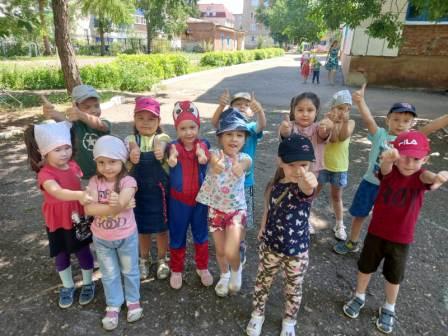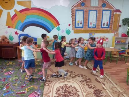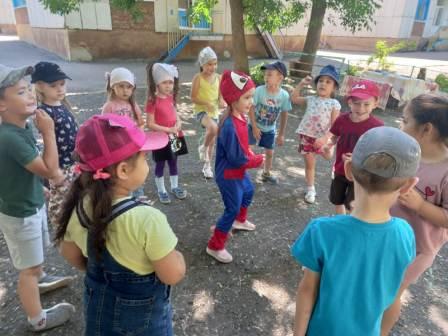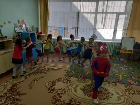 На дневной прогулке детей ожидал еще один сюрприз. Человек-паук с детьми играл в веселые подвижные игры, проводил различные эстафеты, с восторгом танцевали веселый танец.