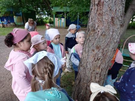 Җәй көне балалар саф һавада көн буе диярлек. Бу табигать белән соклануга күбрәк мөмкинлек бирә. Бу вакытта бер генә саф һавада йөрү дә күзәтүсез узмый. Менә беренче кечкенәләр төркеме балалары да саф һавага чыгып, үзләре өчен яңалык ача. Бүген балалар кырмыскалар артыннан кызыксынып күзәттеләр, аларның тышкы кыяфәтен карадылар һәм тәрбияче сөйләвеннән (Киселева Н.К.) бик күп яңалыклар белделәр. Кырмыскалар - бик хезмәт сөючән бөҗәкләр икән, алар һәрчак ашыгалар, нидер эзлиләр икән. Зур кырмыска оясында зур гаиләләре белән яшиләр, алар һәрвакыт бер-берсенә булышалар. Яңгыр ява башлагач, бу бөҗәкләр үз йортларында качалар, алар беркайда да күренми. Кырмыска ояларына кагылырга ярамагынын, балалар яхшы үзләштерделәр.Чөнки педагогның төп бурычларының берсе - балаларны кече яшьтән үк табигатьне, анда яшәүчеләрне сакларга өйрәтү.