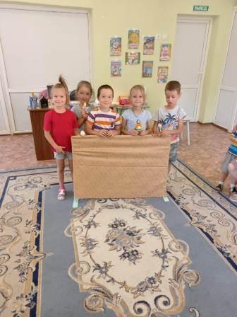Заключительным этапом стало проведение развлечения - викторины «Мои любимые книжки». Дети отгадывали загадки, угадывали сказки с героями - маленькими человечками, дополняли имена сказочным героям, вспоминали волшебные заклинания, которые встречаются в сказках, составляли рифмы, отвечали на вопросы блицтурнира. А в заключении старшая группа показала театр игрушек «Курочка Ряба» для малышей.