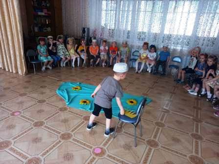 Дети старшей группы знакомились с подвигами детей-героев Великой Отечественной войны - Леня Голиков, Марат Казей, Зина Портнова, Валя Котик. Исполнили песню «Победа», «С дедом на парад», «Три танкиста» (трио мальчиков), танец «Полька-приглашение», слушали исполнение и историю создания песни «Синий платочек», просмотрели мультфильм про мальчика, который разыскивал своего деда «Василек».