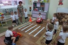 В 1 младшей группе: игровая ситуация «Как перейти дорогу», «Как Маша Зайку учила переходить дорогу», рассматривание иллюстраций; наблюдение за транспортом: легковой и грузовой автомобиль, настольная игра «Транспорт», игры с макетом дороги.