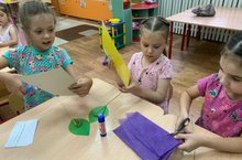 Также организовали игру по ПДД "Красный, желтый, зеленый", где показали знания правил перехода улицы по требованию сигналов. Просмотрели мультфильм про правила дорожного движения. Затем девочки и мальчики слепили из пластилина светофорчики. Юные участники дорожного движения обещали всегда быть внимательными и соблюдать правила безопасности на улице.