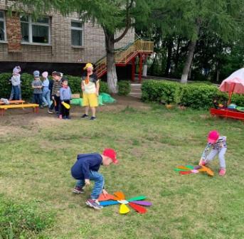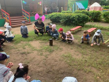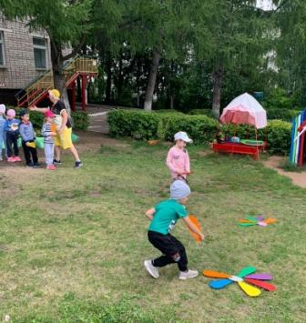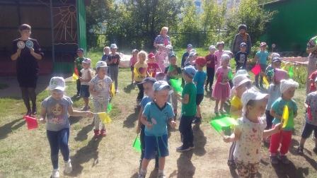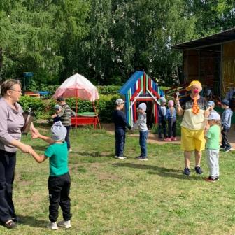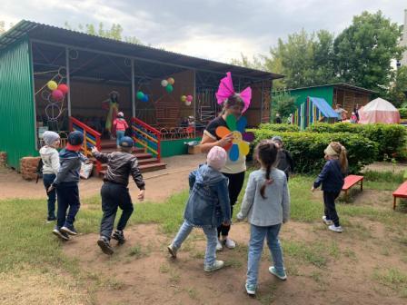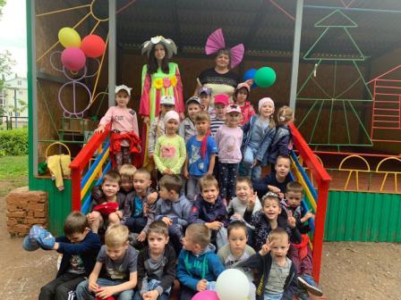 Сегодня наши воспитанники стали участниками летнего развлечения "Солнышко лучистое, в гости приходи", проведенного с целью создания положительного эмоционального состояния у детей через атмосферу веселого летнего развлечения с клоуном, солнышком и участия в нем. Погода решила сделать сюрприз ребятам, и подарила солнечный ясный теплый день. Воспитатели предложили солнышко в гости позвать и с ним немного поиграть. Дети пели песенки, водили хороводы, танцевали с лучиками солнышка. А затем пришел клоун Цветик и принес волшебный цветик-семицветик, маленький кусочек лета. Отрывая лепестки семицветика дети выполняли задания: отгадывали загадки, играли в подвижные игры "Пчелы и цветы", "Собери цветок из лепестков", "Найди себе пару", "Кто быстрее и красивее посадит цветы на клумбу". Итогом мероприятия стала зажигательная дискотека. На лицах детей сверкала улыбка, для них это было настоящее веселье и удовольствие. Хорошо, когда солнышко смеется, а под солнышком всем-радостно живется!