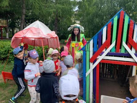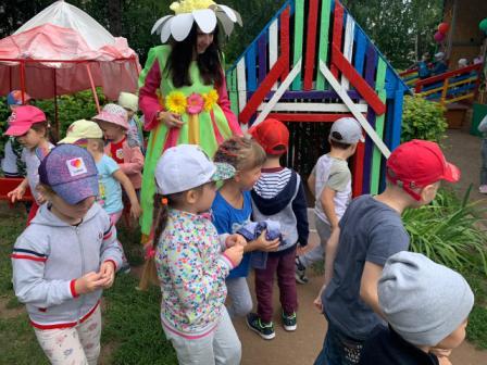 Сегодня наши воспитанники стали участниками летнего развлечения "Цветочный бал", проведенного с целью создания положительного эмоционального состояния у детей через атмосферу веселого летнего развлечения.В гости к детям пришла Фея Цветов и проказница Злючка-Колючка, которая создавала различные препятствия в организации бала, рвала цветы, украла Фею, загадывала сложные загадки. Итогом мероприятия стал танцевальный бал с Феей, под музыку «Цветочный вальс».