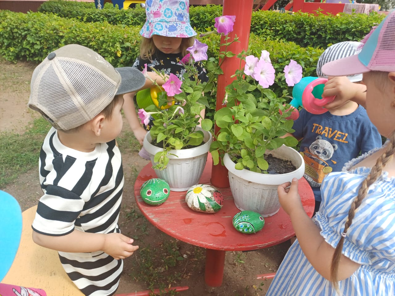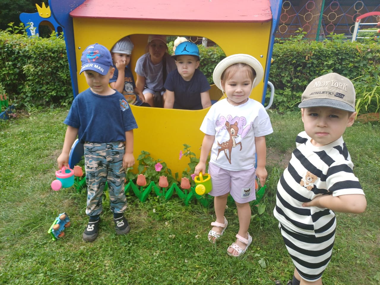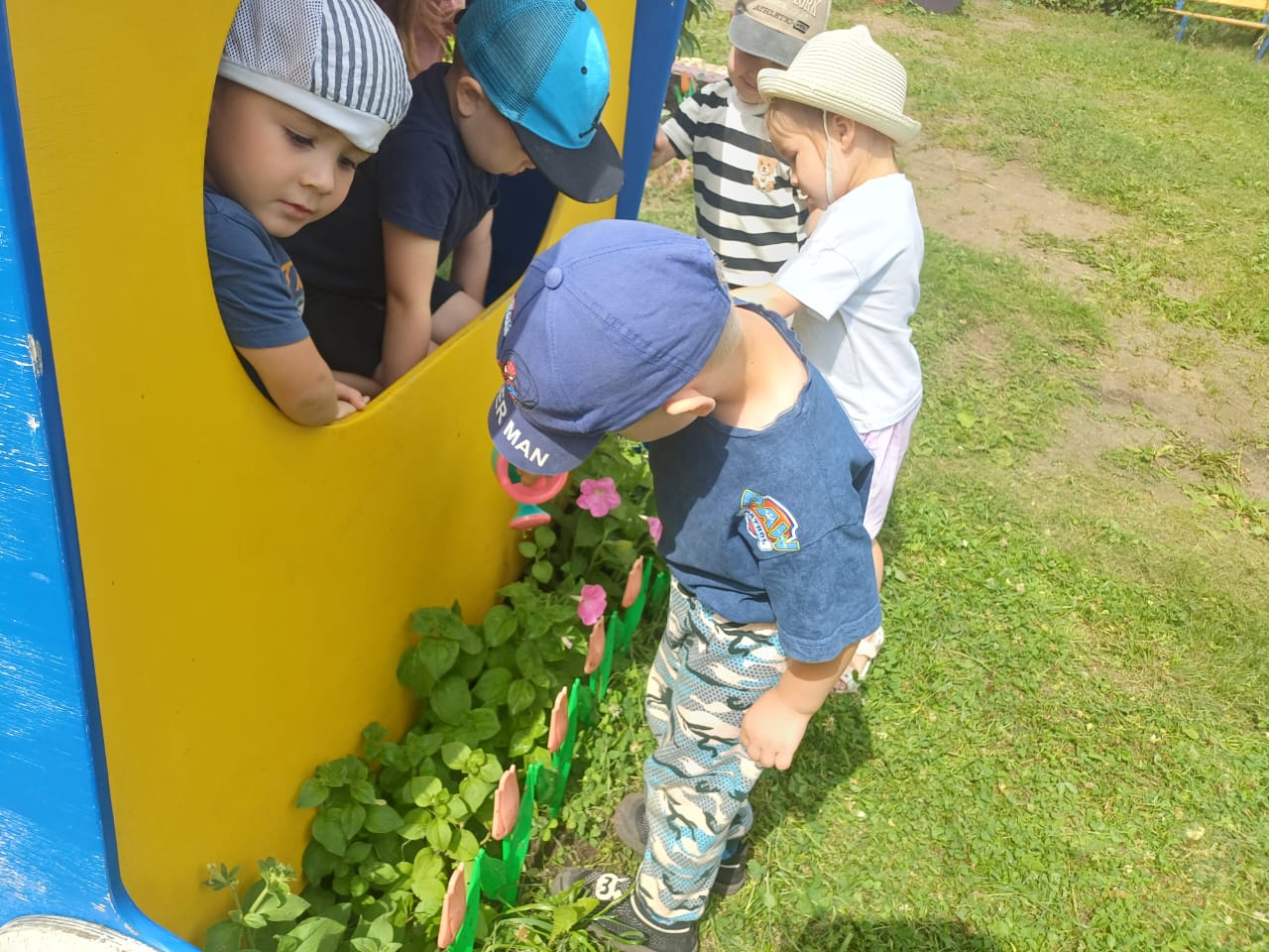 Безнең балалар бакчасы территориясендә чәчәкләр, агачлар, куаклар үсә, алар балаларга үсемлекләрнең гаҗәеп матур дөньясын аңларга, яратырга, шулай ук хезмәт күнекмәләрен үзләштерергә ярдәм итә. Ачык һавада, күзәтүләр вакытында балалар белән чәчәкләрне карау кагыйдәләре турында әңгәмә үткәрелде, үсемлекләр белән сак эш итү кагыйдәләре белән таныштылар, чәчәкләрнең исемнәрен ныгыттылар. Тәрбияче балаларга үсемлекләрне карарга тәкъдим итте. Балалар чәчәкләргә рәхәтләнеп су сиптеләр. Балалар бакчасы территориясендәге чәчәк түтәлләре чәчәкләрне карау һәм күзәтү мөмкинлеге генә түгел, ә балаларга, әти-әниләргә һәм хезмәткәрләргә яхшы кәеф тудыра.