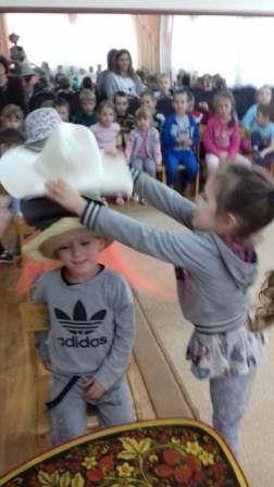 В детском саду прошло развлечение «Дело в шляпе». Воспитатели групп заранее обратились к родителям с просьбой сделать и оформить шляпу полагаясь на свой вкус и фантазию. Главная героиня праздника - Шляпная королева познакомила ребят с историей головных уборов разных времен и народов, вспомнили сказочных героев, носивших шляпы - «Красная шапочка»; «Кот в сапогах»; «Незабудка» и др. Дети читали стихи про шляпы, разгадывали загадки, участвовали в различных аттракционах и конкурсах.