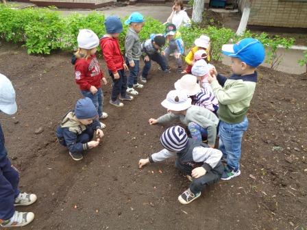 Дети второй младшей группы занимались посадкой лука на грядку. Перед посадкой внимательно рассмотрели луковички, определили, где корешки. Также вспомнили, как выращивали зеленый лук в уголке природы. Дети с удовольствием и усердием выполнили посадку. Теперь будем поливать, наблюдать за изменениями, которые будут происходить с луком.