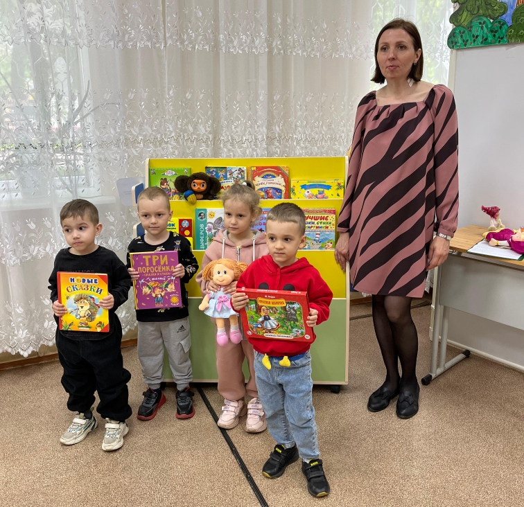 Дети средней группы, в рамках билингвального образования, посетили детскую библиотеку. Сотрудники библиотеки показали детям кукольный спектакль "Ванюша и царевна", провели викторину по русским сказкам, загадывали загадки и играли с куклами в народных костюмах.