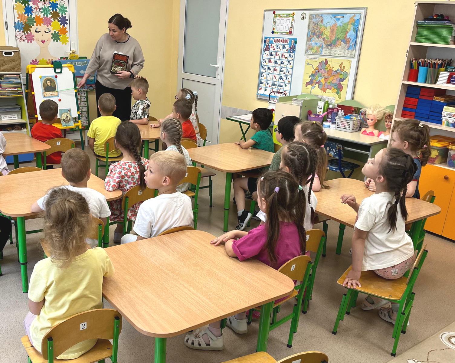 Дети познакомились с творчеством А.С. Пушкина и приняли участие в творческом мастер-классе. Воспитатель рассказал ребятам о жизни поэта и его произведениях, особое внимание уделили «Сказке о рыбаке и рыбке». Дети с интересом вспоминали любимые сказочные образы, участвовали в викторине по сказкам А.С. Пушкина и активно отвечали на вопросы. После познавательной части, прошло творческое занятие-аппликация «Золотая рыбка». Дети с удовольствием создавали свои яркие работы из цветной бумаги. Каждая «золотая рыбка» получилась особенной, отражающая фантазию и старание маленьких мастеров. Дети не только расширили свои знания о великом поэте, но и смогли выразить свои впечатления через творчество.