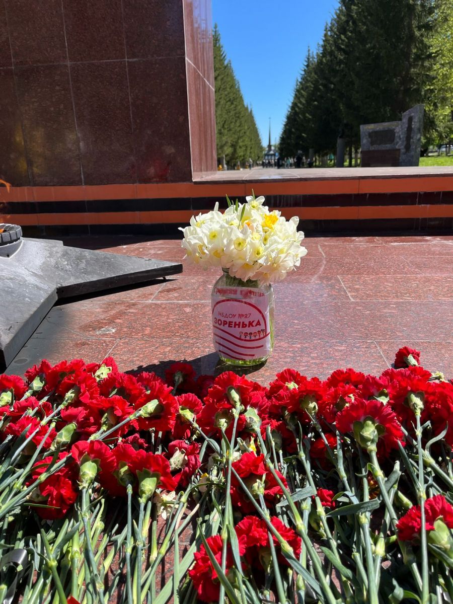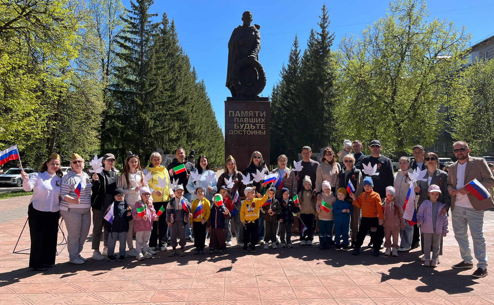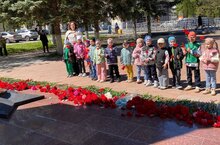 Воспитанники подготовительной к школе, старшей и средней групп вместе с воспитателями возложили цветы к памятнику Неизвестному солдату, дети средней группы вместе с родителями организовали флешмоб.