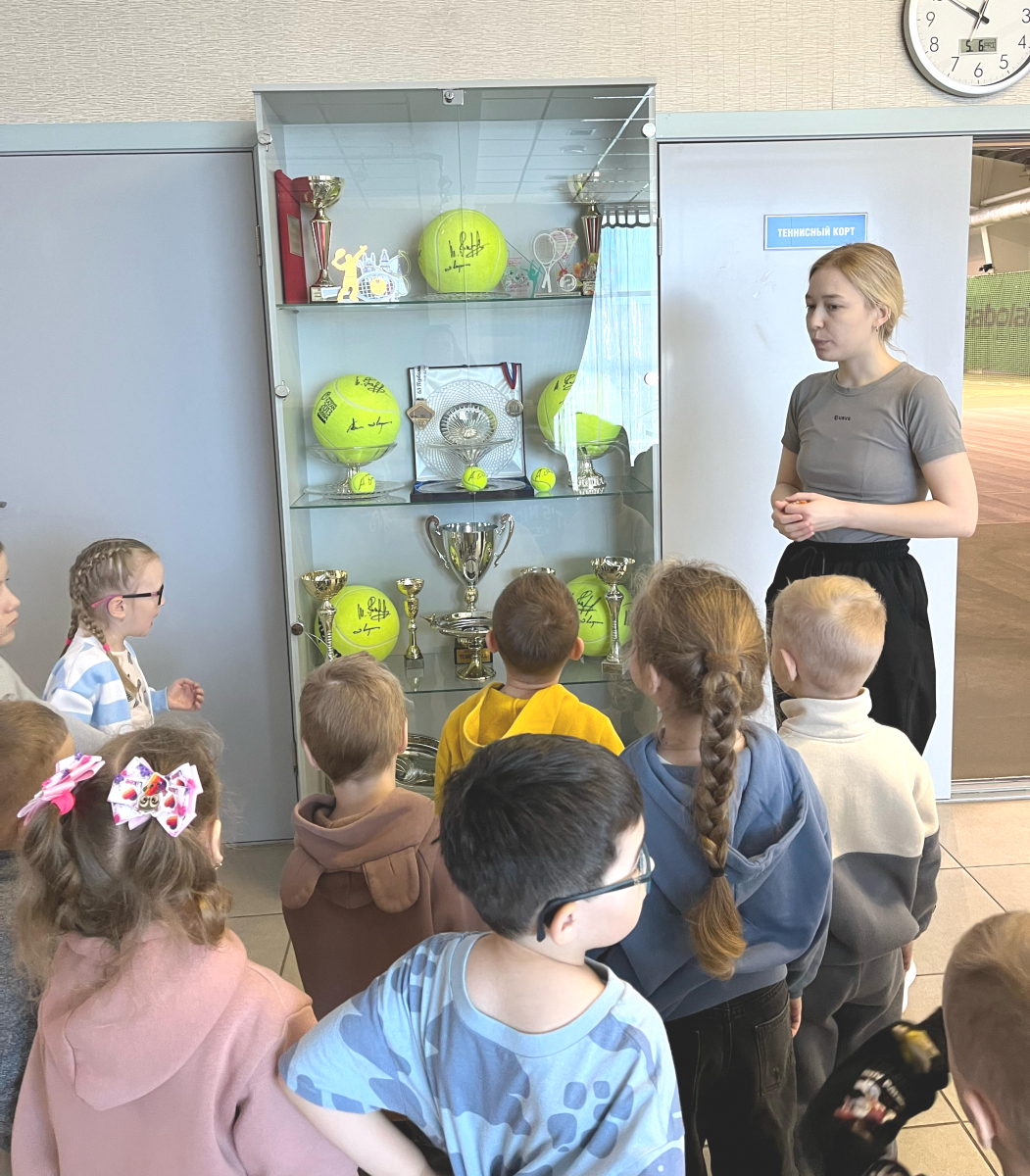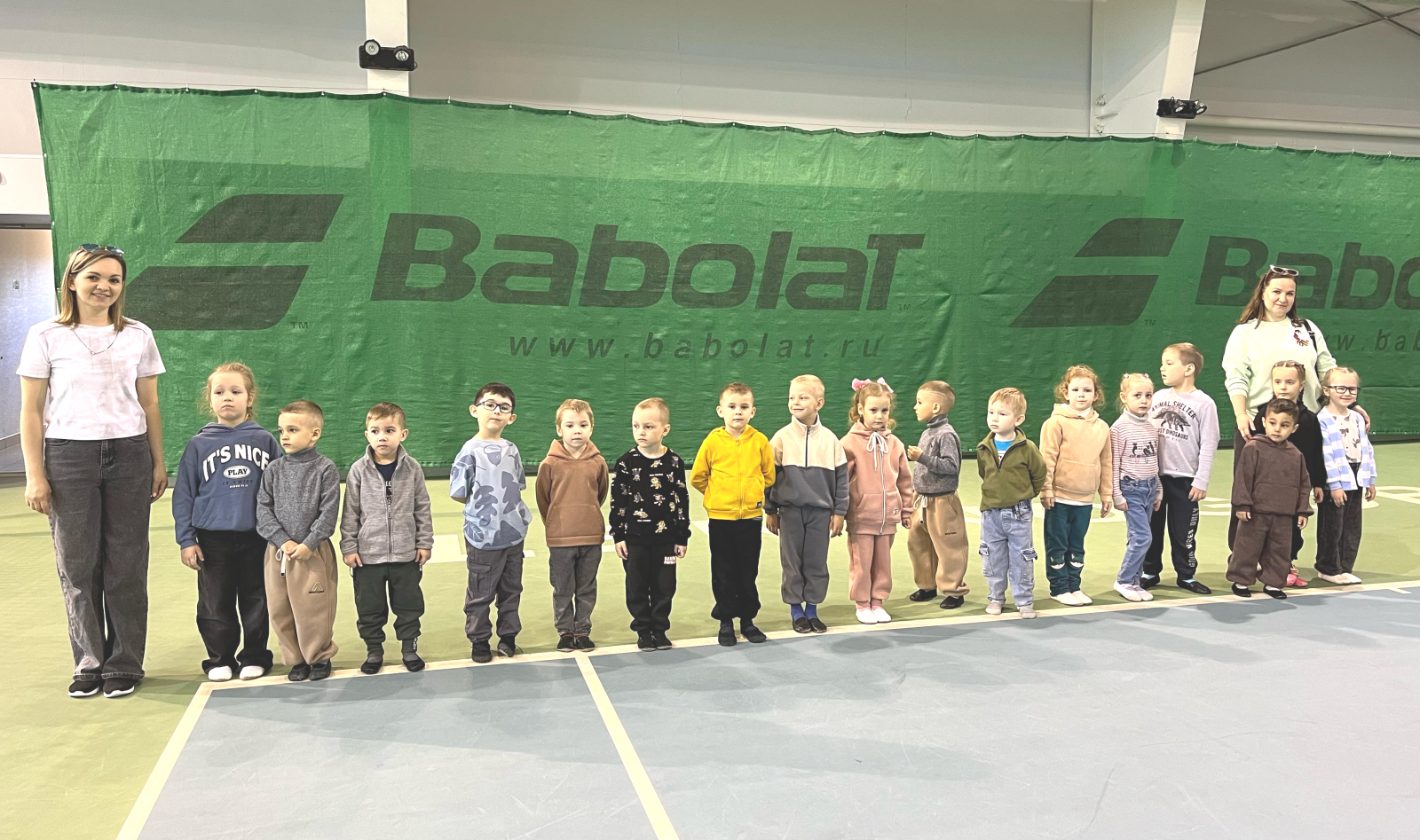 Воспитанники средней группы посетили «Теннис Холл». Сотрудники «Теннис Холла» радушно встретили детей, провели увлекательную экскурсию по спортивным залам, дали возможность самим попробовать себя в роли теннисистов, подарили целый пакет теннисных мячиков. Дети были довольны, им надолго запомнится эта экскурсия.