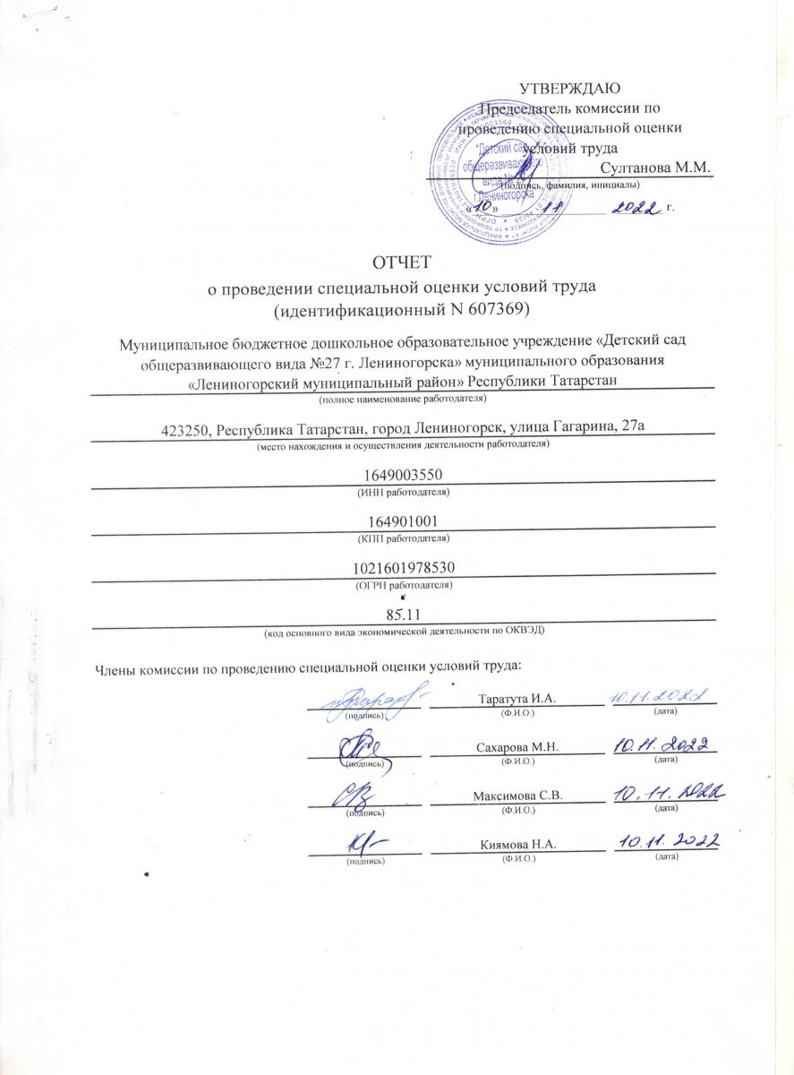 Отчет о проведении СОУТ (ноябрь 2022 год)