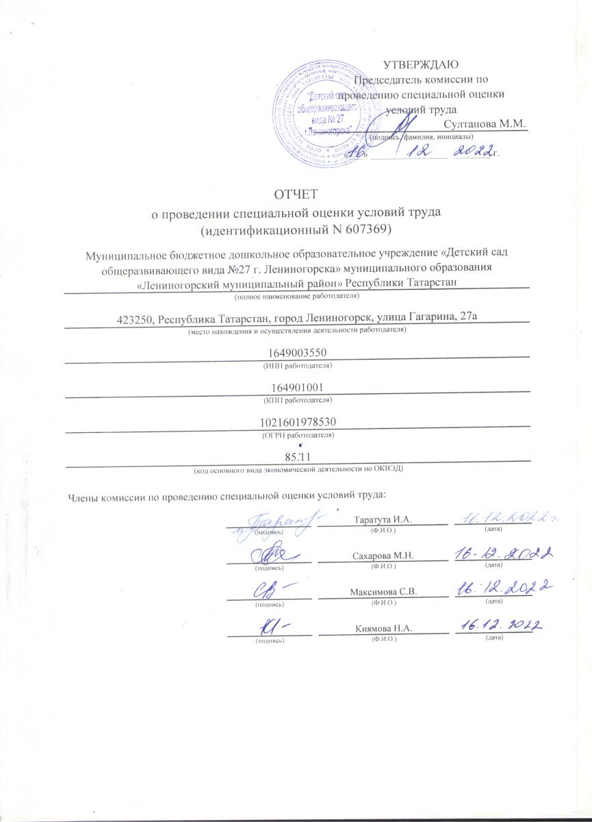 Отчет о проведении СОУТ (декабрь 2022 год)