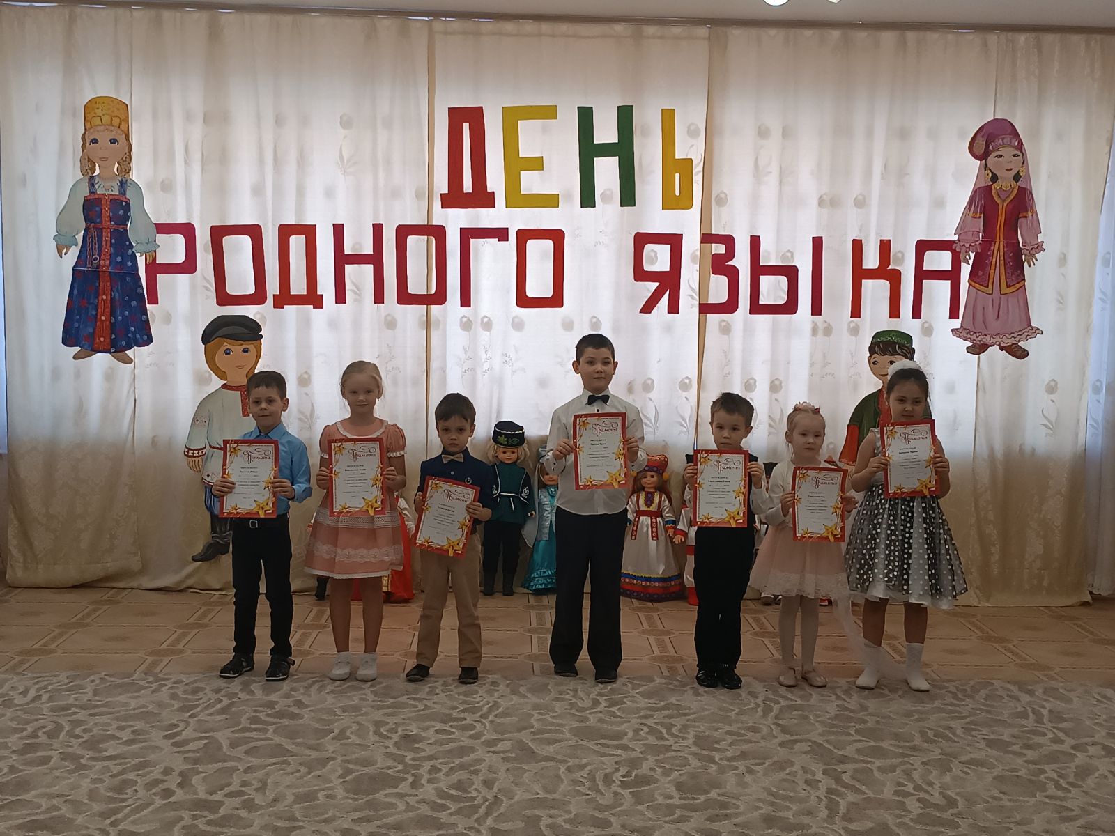 В рамках тематической недели "И туган тел, и матур тел" в детском саду был организован праздник "День Родного языка". В ходе мероприятия ребята отгадывали загадки о родном языке, переводили слова с татарского языка на русский, назвали столицу России и Республики Татарстан, перечислили народы, которые проживают в Республике и в России и поиграли в народные игры Поволжья. Все мероприятие проходило под национальные песни и музыку. Также в рамках тематической недели прошел конкурс чтецов "Он наш поэт, он наша слва", посвященный творчеству Мусы Джалиля. В конкурсе приняли участие воспитанники старшей и подготовительной группы. Жюри конкурса распределило места следующим образом: