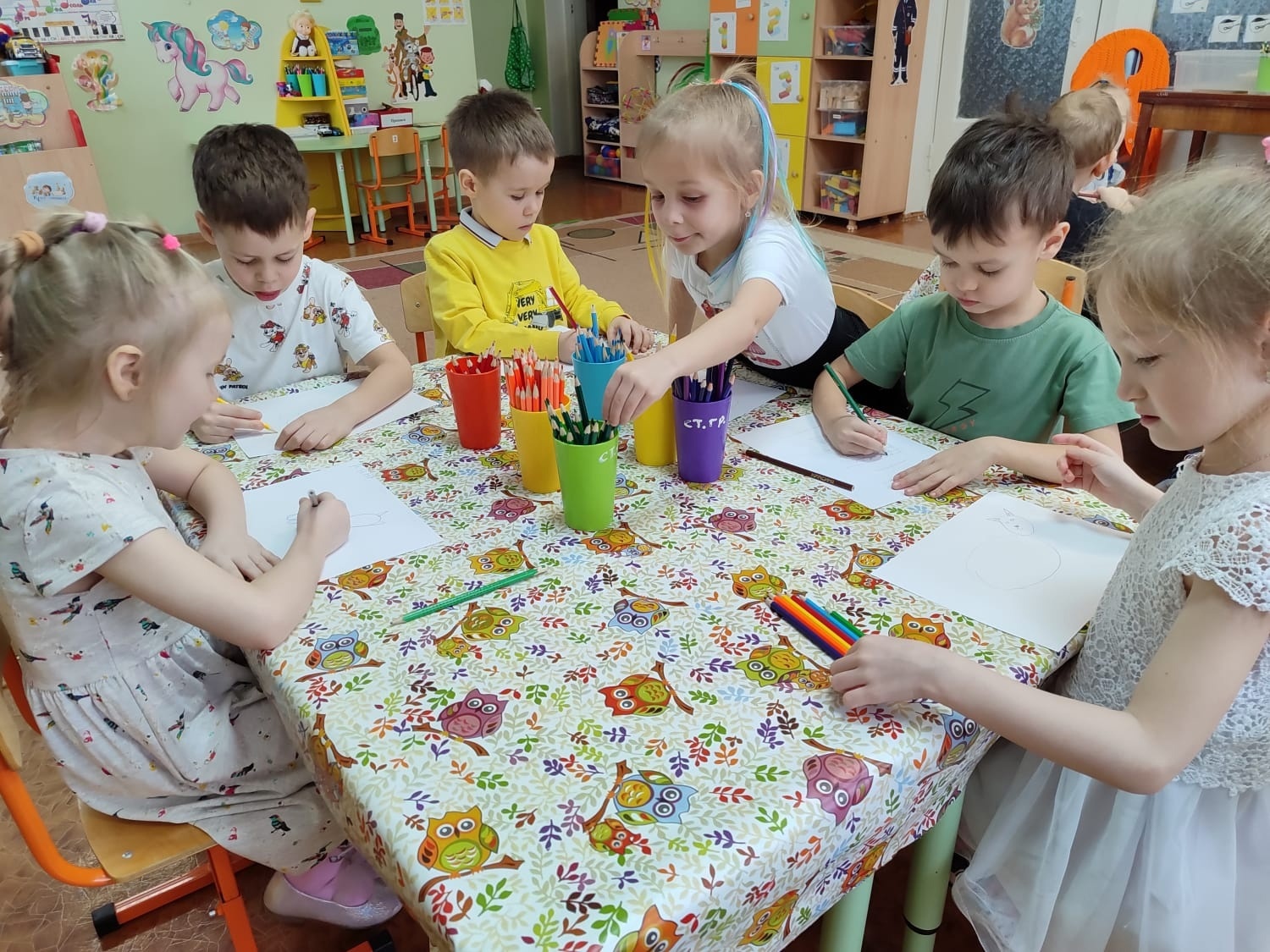 В группе "Колокольчики" рисование на тему «Моё любимое домашнее животное».