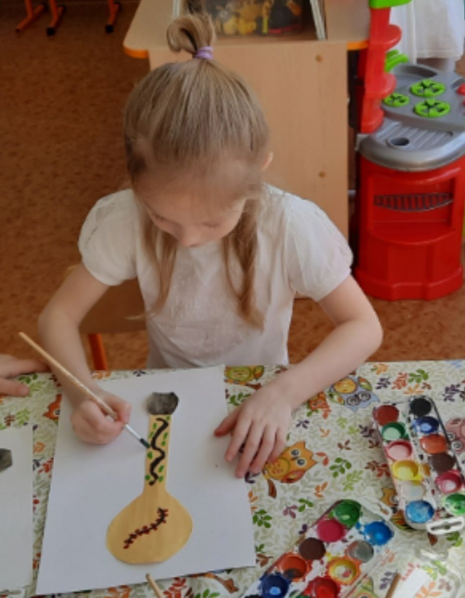 Воспитанники подготовительной группы продолжают на занятиях по изодеятельности знакомиться с народными промыслами. В этот раз ребята украшали ложки хохломской росписью.