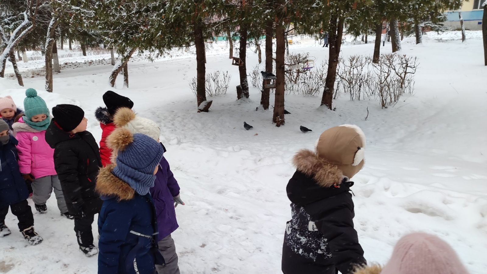 Мы проложили свой путь через городскую аллею. На которой мы наблюдали за деревьями, за гнёздами которые были на самых макушках деревьев, за кормушками,на которых сидели синички, за голубями, которые клевали семечки.