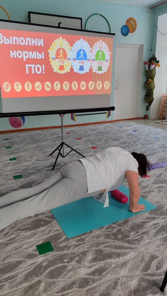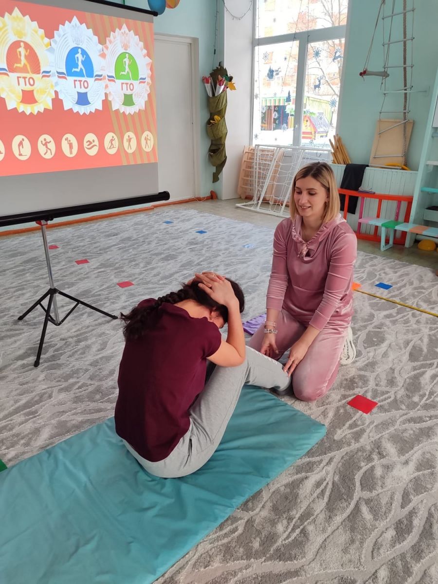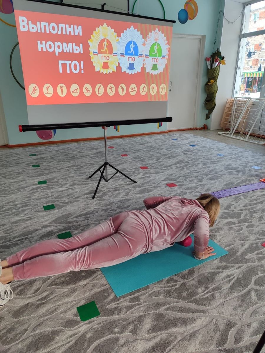24 ноября в рамках спортивного праздника "Вместе с мамой", посвященного Дню матери, воспитанники подготовительной группы и их мамы приняли участие в сдаче нормативов ГТО. Мамы пробовали свои силы в таких испытаниях, как наклон вперед из положения стоя на гимнастической скамейке, поднимание туловища из положения лежа на спине и сгибание и разгибание рук в упоре лежа на спине.