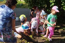В нашем детском саду, как и во многих других, есть огород. Наличие огорода в детском саду даёт возможность познакомить городских детей с таким понятием, как «сельскохозяйственный труд». Дети знакомятся со спецификой работы по выращиванию овощных культур, узнают, что получение конечного результата невозможно без ряда последовательных трудовых процессов (сначала надо подготовить землю, потом посеять семена; чтобы они росли, их надо поливать, рыхлить землю, делать прополку и т. д.). Дети могут наблюдать за тем, как обрабатывают землю, за первичным развитием овощных культур, за изменениями в росте растений, знакомиться с отличительными признаками овощей, а главное, принимать посильное участие в уходе за огородом.