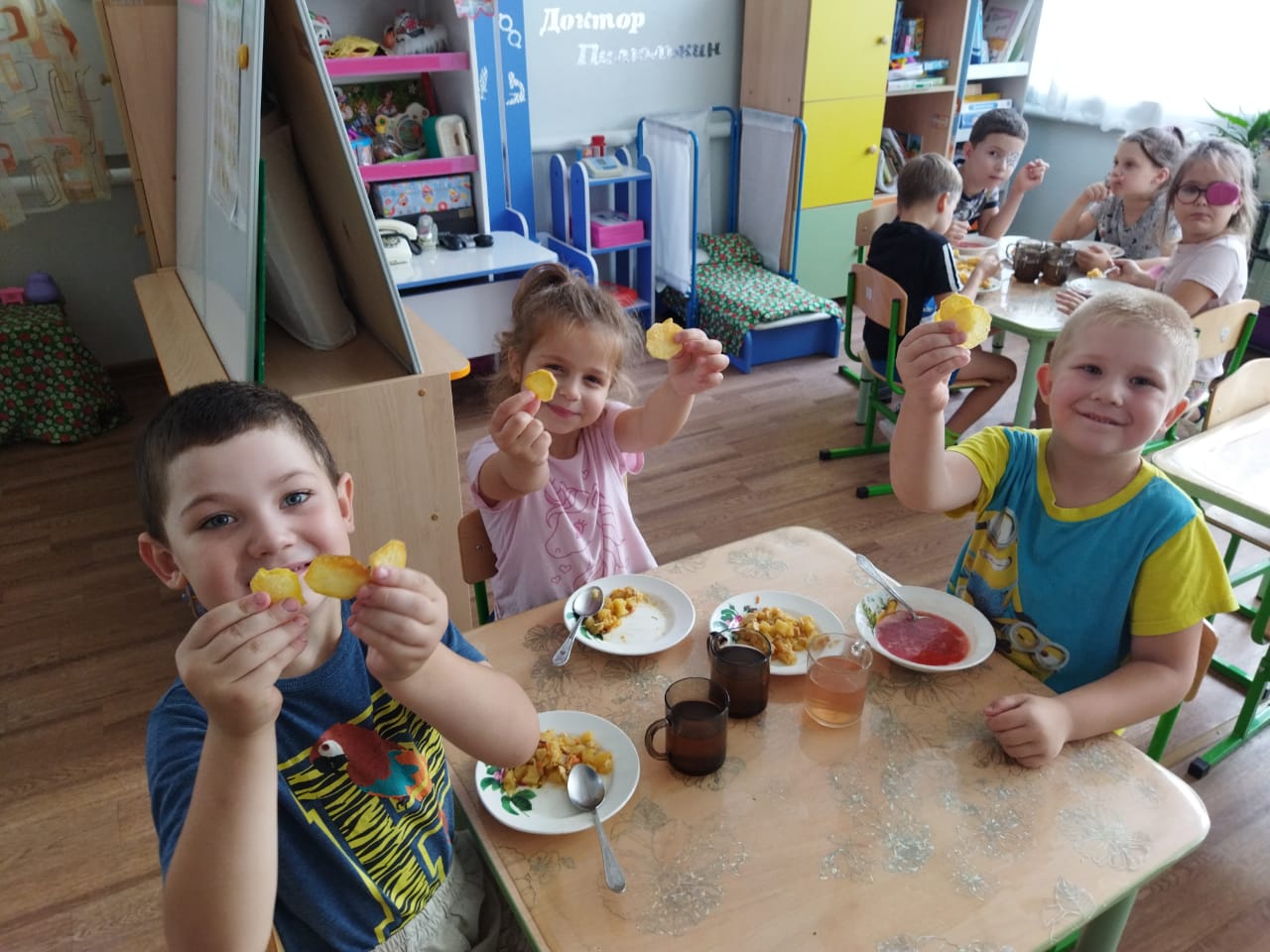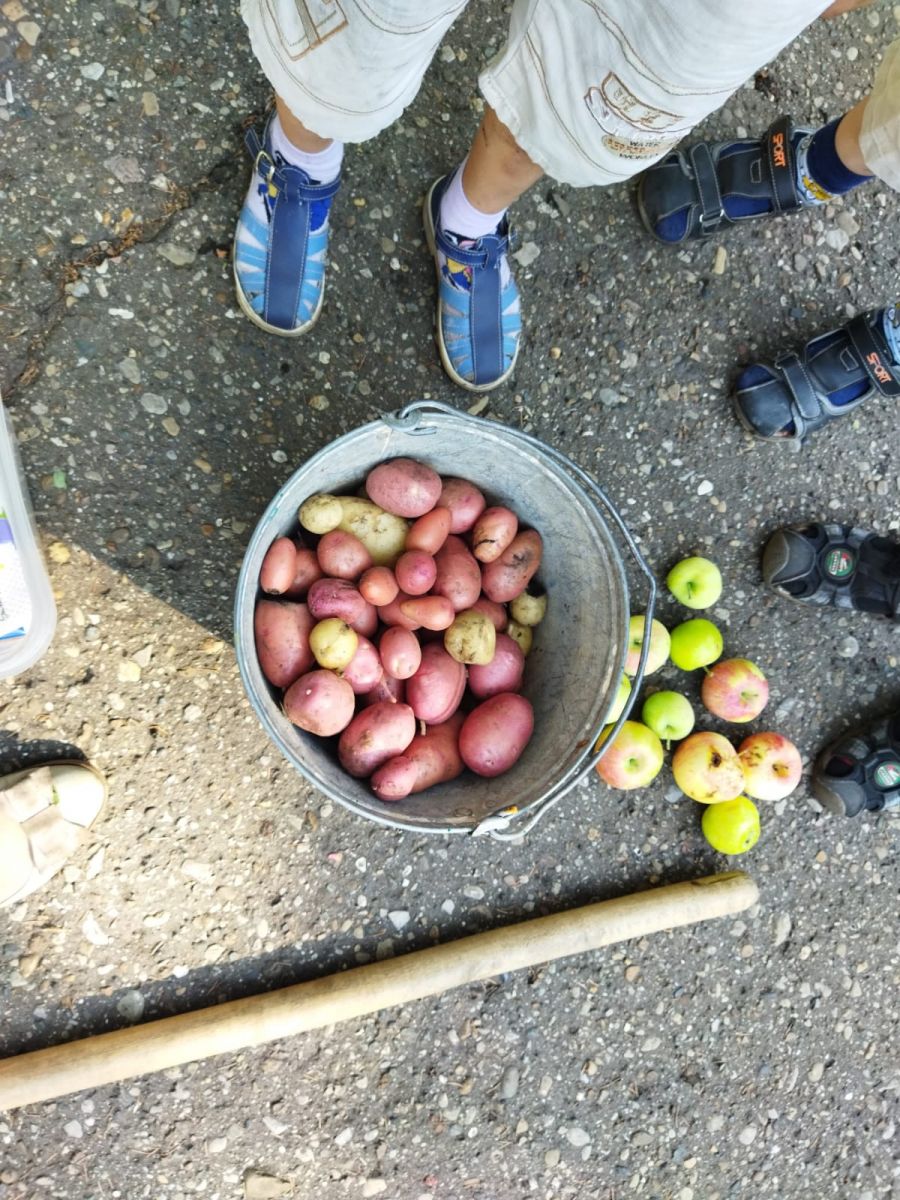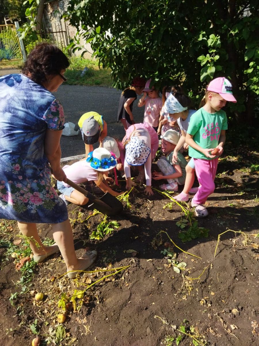 Воспитанники старшей группы с воспитателем Даниловой В.С. этой весной посадили семена картофеля. Все лето ребята ухаживали, поливали и наблюдали, как растет картофель. А результатом труда стало всеми любимое блюдо – жареная картошка.