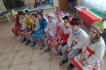 Развивался интерес и к истории России. Детям удалось прослушать гимн каждого из народов России, поиграть в дидактические игры, опередить символику, просмотреть видеосюжет о разных нациях для закрепления знаний.Мәктәпкә әзерлек төркемендә “Рәсәй халыклары белән танышу” темасына чара узды. Балалар Рәсәйдә яшәүче халыклар белән, аларның гореф-гадәтләре, мәдәнияте белән таныштылар. Чараның максаты: төрле халыкка уңай мәнәсәббәт , кечкенә ватанга мәхәббәт уяту, Рәсәйнең тарихы белән кызыксындыру.