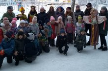27 февраля дети стали участниками Масленичных гуляний. Любимые персонажи детей, скоморохи, устроили веселые масленичные забавы. Дети соревновались в смелости и находчивости, силе и ловкости, смеялись над шутками скоморохов.