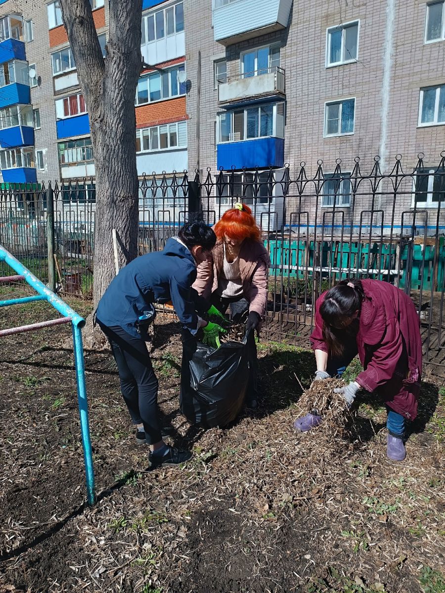 В рамках санитарно-экологического двухмесячника, сотрудники детского сада принимают активное участие в уборке территории.