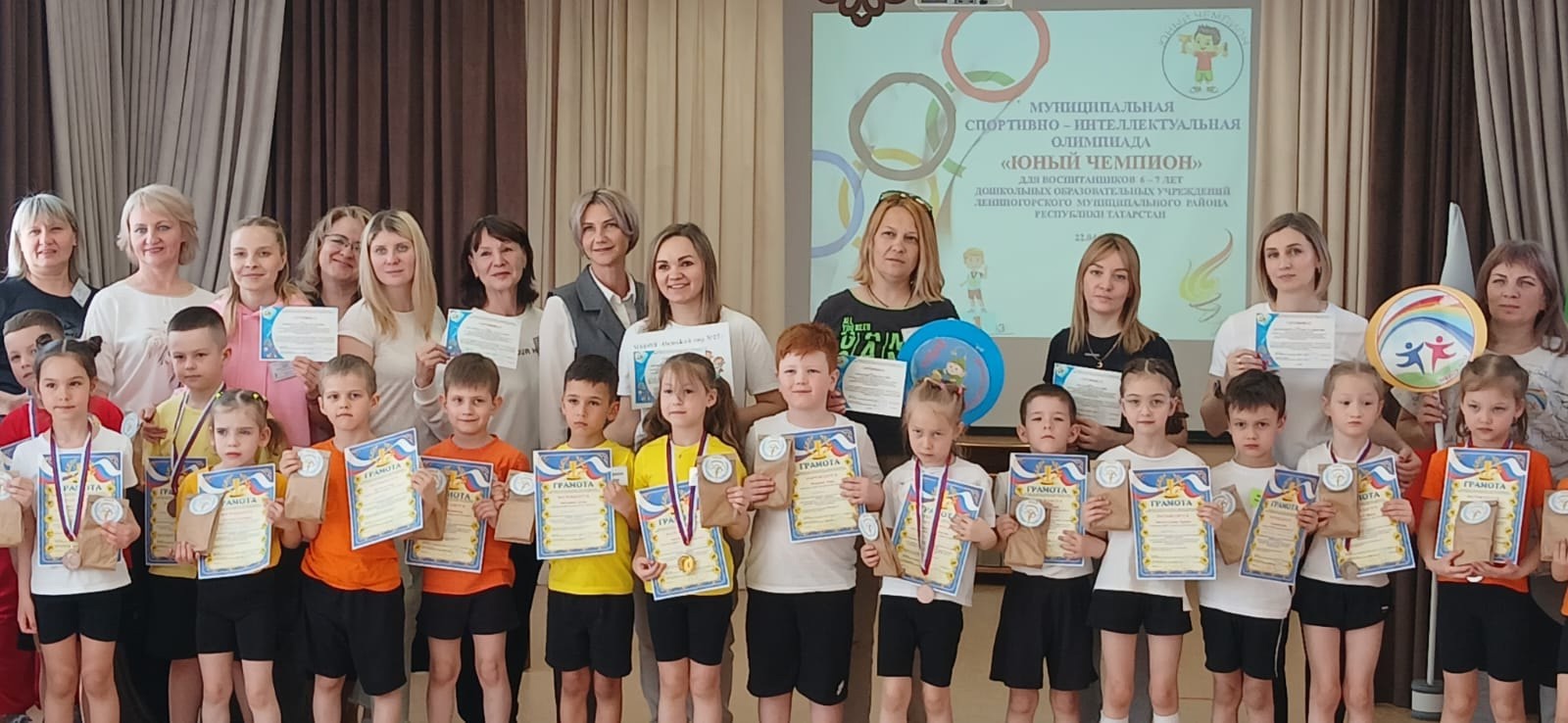 22 апреля на базе детского сада √7 прошла муниципальная спортивно-интеллектуальная олимпиада "Юный чемпион". Воспитанники подготовительной группы Галиева Сафина и Галимов Дамир достойно представили наш детский сад на этих соревнованиях. Ребята соревновались со своими сверстниками в интеллектуальных испытаниях и в спортивной полосе препятствий. По итогам оценивания всех заданий Галиева Сафина заняла почётное второе место, а Галимов Дамир стал победителем в номинации "За волю к победе". Поздравляем ребят и их педагогов (Зарипову Г. Р., Неустроеву А.В.) и желаем им дальнейших успехов.