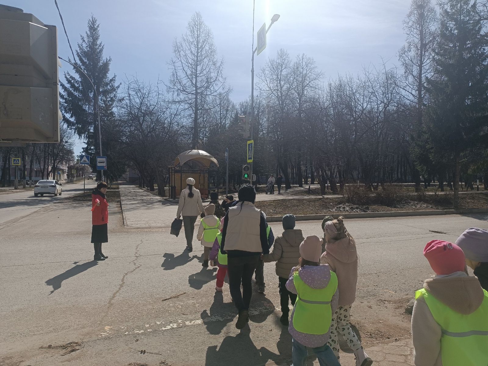 В ходе экскурсии дети познакомились с понятием «перекресток», наблюдали за работой светофора, движениями машин и пешеходов..jpg)