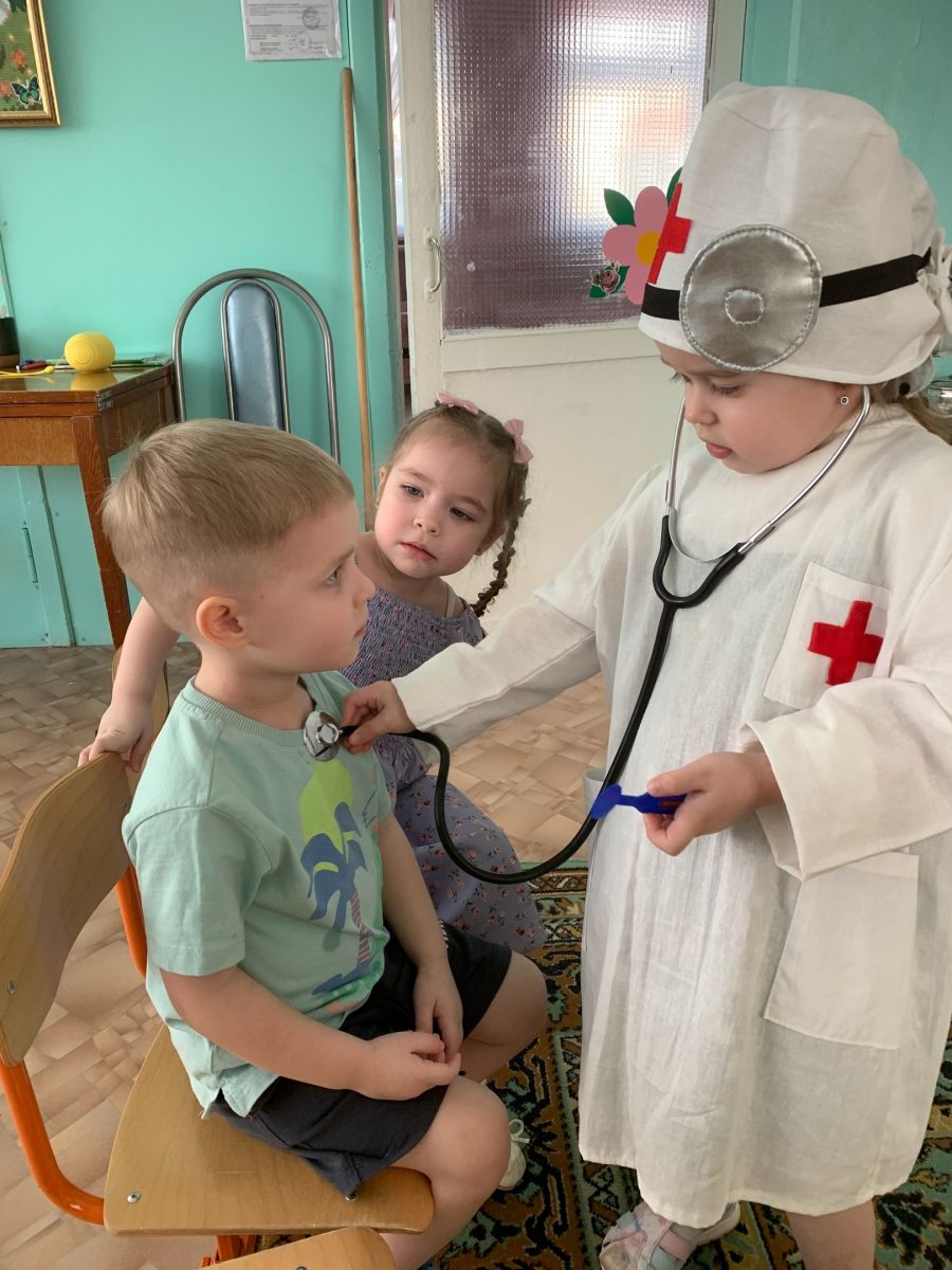 Ранняя профориентация детей дошкольного возраста — это первичный этап подготовки дошкольника к выбору будущей профессии, заключающийся в знакомстве ребенка с различными видами труда . Ребята в игровой форме познакомились с такой нужной людям профессией - профессией врача. Они узнали о том, что врачи бывают разные: детские врачи-педиатры, окулисты, хирурги, травматологи, стоматологи… Кто-то лечит зрение и зубки, кто-то –слух и сердце, а кто-то делает очень сложные операции. В группе открылась настоящая «поликлиника», где сами дети были врачами: они меряли температуру, проверяли зрение, лечили горло, слушали сердце. Мы думаем, что совсем скоро ряды медицинских работников пополнятся воспитанниками детского сада №29.