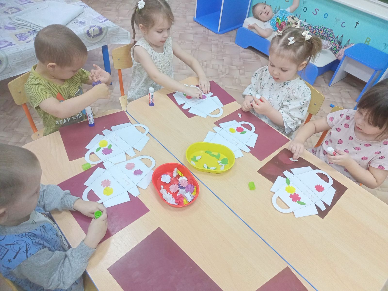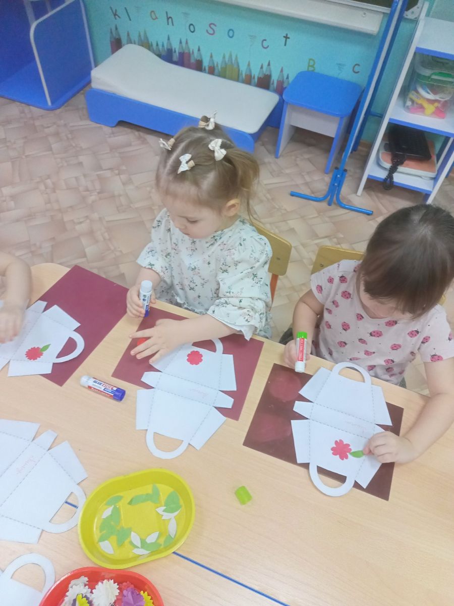 В преддверии праздника "День Матери", воспитанники 2 младшей группы решили украсить сумочки для мам своими руками. Ребята увлеченно работали и в итоге создали замечательные композии с использованием цветной бумаги.