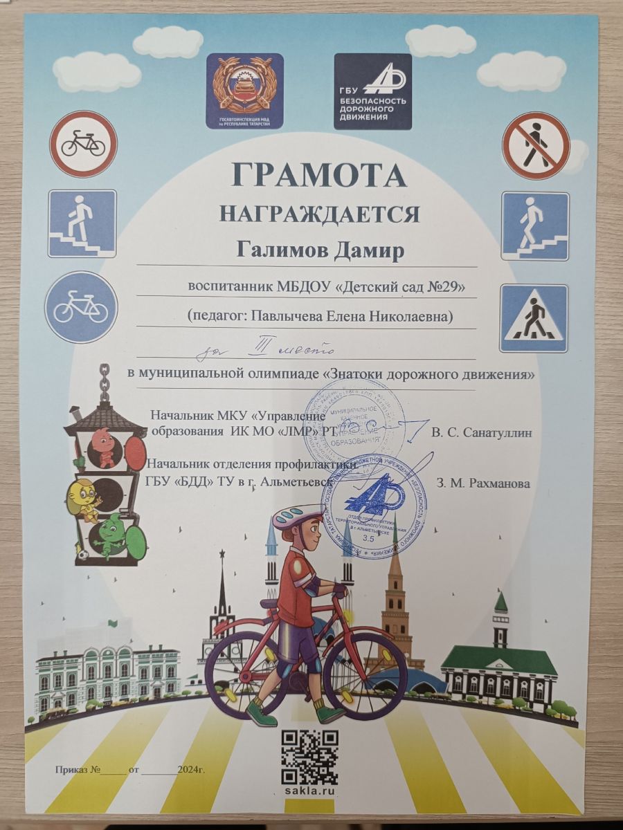 Воспитанница ДОУ № 29 Галиева Сафина стала победителем соревнований, заняв 1 место. Воспитанник ДОУ №29 Хуснутдинов Аскар стал победителем в номинации «Олимпийские резервы». Мы поздравляем ребят и желаем им дальнейших спортивных успехов.