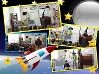 Наши добрые друзья – сотрудники Детской библиотеки им. Ю.А.Гагарина – пригласили наших дошколят принять участие в веселом и увлекательном «путешествие» к тайнам космоса. Наши «всезнайки» с необычайно загадочным Звездочетом познакомились с названиями планет Солнечной системы и их «характерами», а затем построили свой «парад» планет, нарисовали целую космическую армию из новых больших и маленьких ракет, узнали вместе с любимым Незнайкой вкусное меню космонавта, прошли веселую игровую подготовку будущих космонавтов.