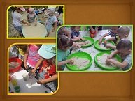 Дети знакомятся со свойствами песка (сухой, мокрый), постигают приёмы строительства из него. Действия с песком развивают мелкую моторику, ручную умелость. Создание и обыгрывание построек обеспечивает развитие детского творчества. Манипулятивные действия с песком вызывают у ребёнка чувство комфорта, удовольствия, радости, что благоприятно сказывается на работе всех функций и систем организма.