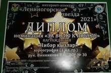 Поздравляем с победой в номинации "За волю к победе", в конкурсе "Лениногорская звезда-2021", воспитанниц подготовительной к школе группы и музыкального руководителя Винникову Елену Петровну.