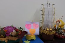 Замечательная выставка поделок была организована ко дню дошкольного работника в фойе детского сада, разнообразные «Кораблики пожеланий» сделаны руками детей и их родителей. Все участники проявили огромную фантазию, показали свое творчество и мастерство. Выставка получилась очень интересной - привлекает внимание всех детей и родителей и создает настроение!