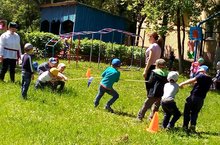 Лето – самая прекрасная, самая долгожданная пора для детей. Летнюю работу в детском саду принято называть оздоровительной, она имеет свою специфику. Важно максимально использовать благоприятные для укрепления здоровья детей условия летнего времени и добиться, чтобы ребёнок окреп, поправился и закалился, научился понимать и любить удивительный и прекрасный мир. В нашем детском саду беззаботная жизнь детей в летний период наполнена развлечениями, смехом и весельем. И сегодня, в этот солнечный денёк педагоги нашего детского сада провела оздоровительное мероприятие «Вот оно какое наше лето!». Воспитанники соревновались в играх – эстафетах, играли в подвижные игры. Такие веселые, задорные и увлекательные развлечения способствуют гармоничному физическому развитию, воспитанию ловкости, быстроты, координации движений и морально-волевых качеств.