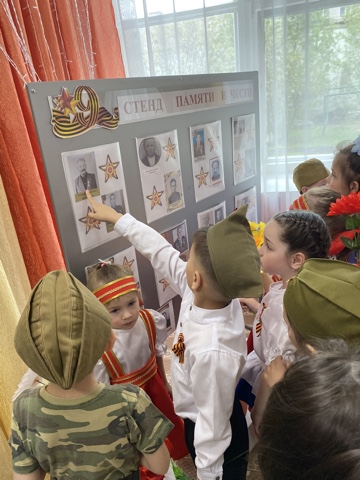 Воспитатели рассказали воспитанникам о важных моментах нашей истории, доступно объяснили, что такое День Победы, почему мы так свято к нему относимся, почему это радостный праздник со слезами на глазах, почему нам нельзя его забывать.