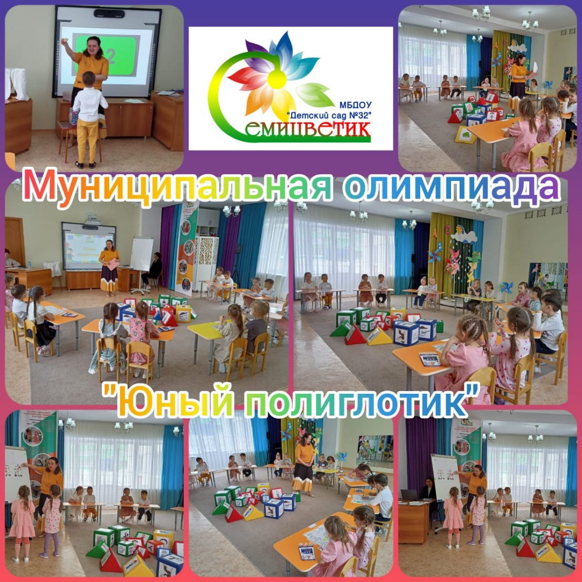 В нашем детском саду в рамках работы базовой площадки по полилингвальному образованию прошла Муниципальная олимпиада по английскому языку "Юный полиглотик". В олимпиаде приняли участие детские сады № 5,7,15,22,23,24,32. Каждая команда боролась за победу!Безнең балалар бакчасында, күп телләрле белем бирү базасы эше кысаларында, "Яшь полиглот" инглиз телендә Муниципаль олимпиада үткәрелде. Олимпиадада 5,7,15,22,23,24,32 балалар бакчалары катнашты. Һәр команда җиңү өчен көрәште!