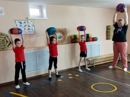 Мы спортсмены хоть куда, но без папы никуда. Пресс качаем, в даль мешочки мы метаем.