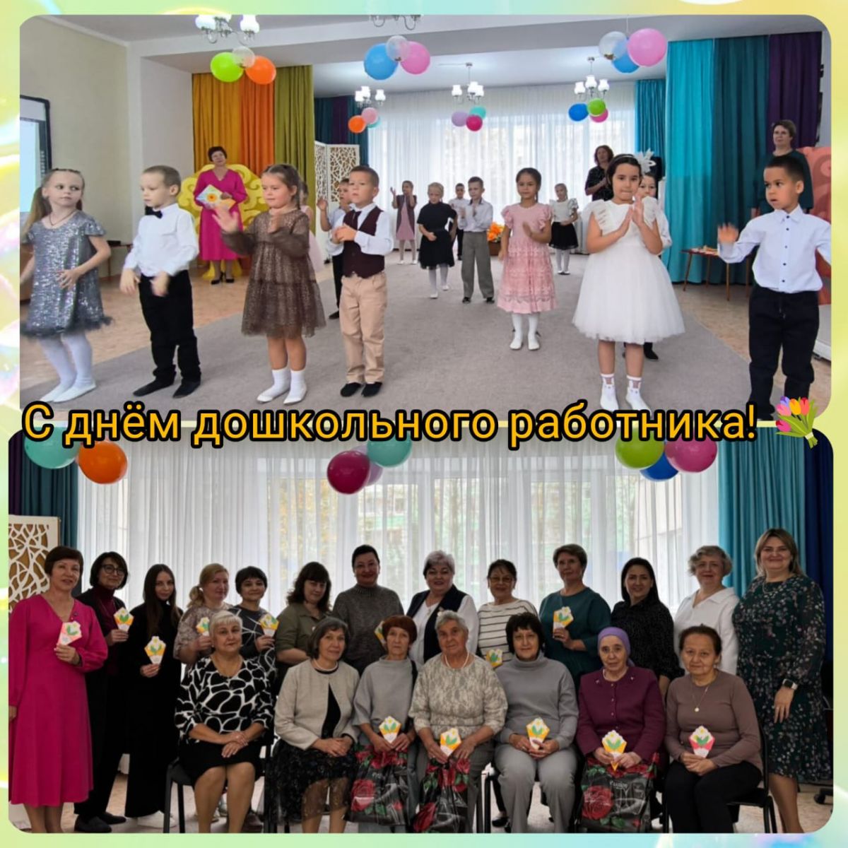 В преддверии профессионального праздника «Дня работников дошкольного образования» в нашем детском саду прошло торжественное мероприятие, в котором приняли участие воспитанники нашего ДОУ. Этот особенный день посвящён всем взрослым, которые заботятся о детях каждый день в детском саду. Много тёплых слов благодарности прозвучало в этот день в адрес сотрудников. Ребята порадовали всех присутствующих гостей творческими номерами, душевными песнями, трогательными стихотворениями и яркими танцами.