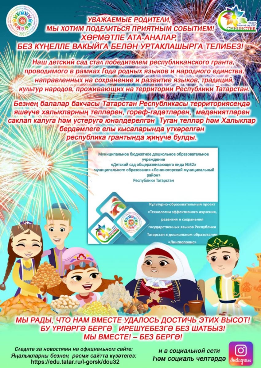 Муниципальное бюджетное дошкольное образовательное учреждение «Детский сад общеразвивающего вида №32» муниципального образования «Лениногорский муниципальный район» Республики Татарстан/Татарстан Республикасы «Лениногорск муниципаль районы» муниципаль берәмлеге «32нче гомумүстерешле балалар бакчасы» муниципаль бюджет мәктәпкәчә белем бирү учреждениесе - новости