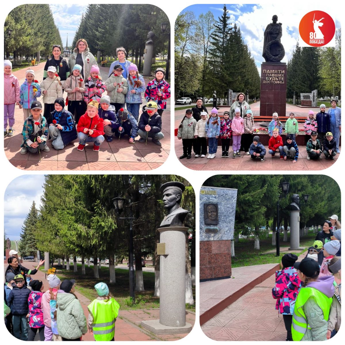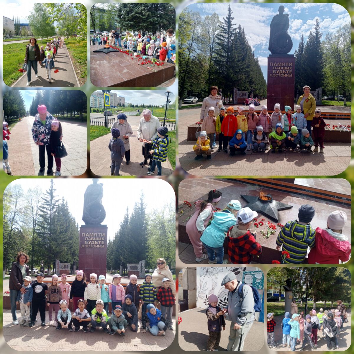 Бөек Ватан сугышында Җиңү көнен бәйрәм итү алдыннан урта, өлкән һәм әзерлек төркемнәре балалары өчен "Мәңгелек ут"ка экскурсия оештырылды. Әлеге экскурсиянең максаты: балаларның Совет халкының Бөек Ватан сугышында Җиңүенең әһәмияте турындагы белемнәрен формалаштыруны дәвам итү. Бүгенге көндә безнең киләчәк буыннарга сугыш кырларында һәлак булганнарның, госпитальләрдә яралардан үлгәннәрнең, хәбәрсез югалганнарның, фронтта һәм тылда үз көчләрен, гомерләрен һәм сәламәтлекләрен кызганмаган кешеләрнең Яхшы истәлеген саклап калудан да мөһимрәк бурычыбыз юк. Сугыш геройлары турындагы истәлекләр китапларда, шигырьләрдә, җырларда, фильмнарда мәңгеләштерелгән. Балалар ветераннарны искә алдылар, "мәңгелек ут"мемориалына чәчәкләр салдылар. Юлда балалар өлкәннәргә открыткалар һәм георгий тасмалары тараттылар.