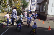 Воспитатели провели для детей старшей и подготовительной группы познавательную и увлекательную игру, в которой ребята смогли не только показать своё мастерство управления велосипедом,но и проявили знания правила дорожного движения!